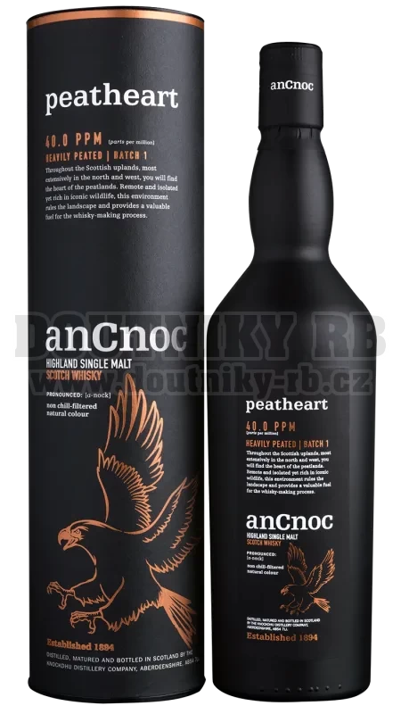 AnCnoc Peatheart je velmi vydařená whisky s výraznou nakouřenou rašelinovou chutí s 34ppm fenolů.