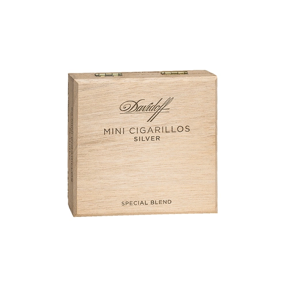 Balení 50 ks doutníčků Davidoff Mini Cigarillos Silver v originální dřevěné krabičce Davidoff.