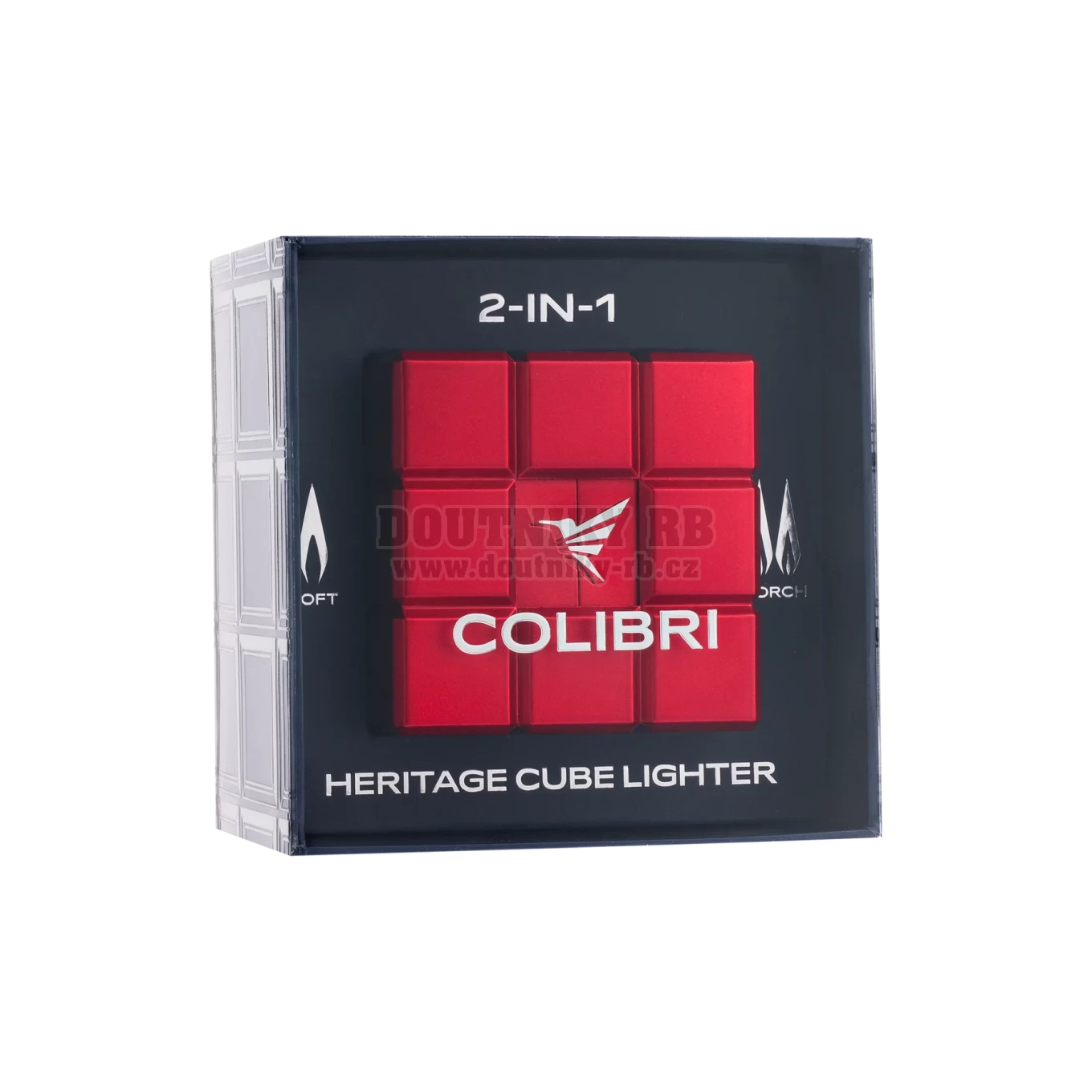 Zapalovač Heritage Cube má kombinaci 2 turbo trysek i klasického soft plamene, které jsou ovládány každý jiným tlačítkem.