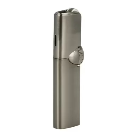 Kovový zapalovač má na čelní straně umístěný kulatý ovladač, kterým ovládáme zapnutí a vypnutí plynu.