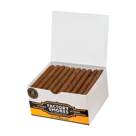 Factory Smokes Connecticut shade Cigarillos používají světlý Connecticut krycí list, který doutníkům dodává jejich charakteristickou jemnou chuť. Díky Connecticut listu mají tyto cigarillos jemnější tělo a lehce sladkou chuť s tóny smetany a koření.