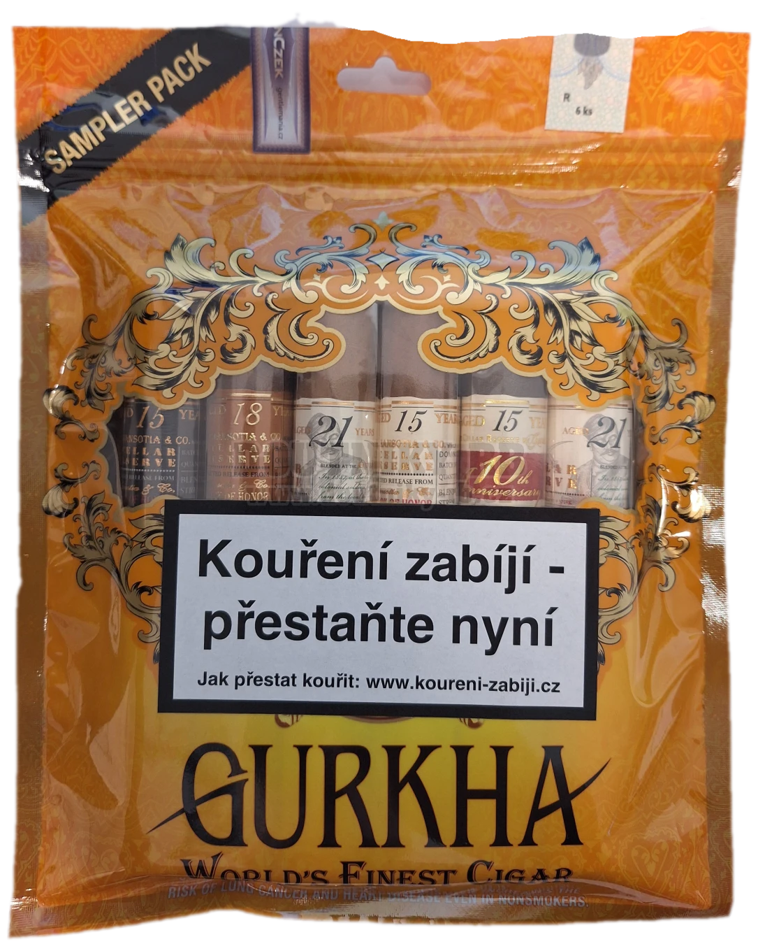 Gurkha Toro Sampler Bag je jedinečné balení výběru 6 ks doutníků Gurkha velikosti Toro ve zvlhčovacím sáčku designu Gurkha.