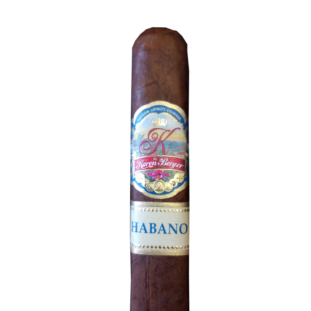 K by Karen Berger Habano s krásně hladkým krycím listem Habano seed nebo také nazývaný Natural má jemnou tabákovou chuť s chutí cedru, oříšků s lehkou sladkostí na patře.
