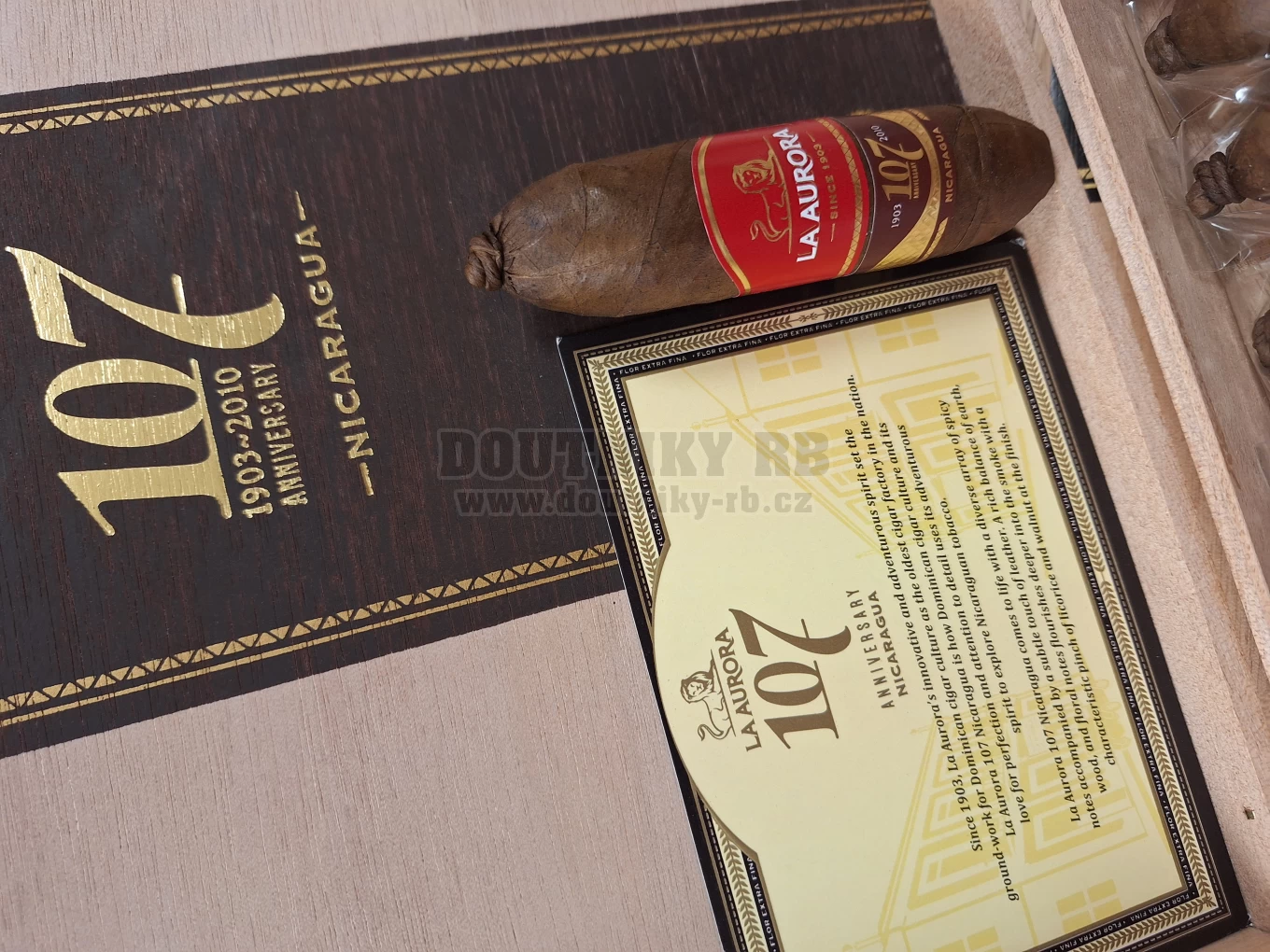 La Aurora 107 Nicaragua má středně plnou chuť s tóny zeminy, kakaa, vanilky a lesního ovoce jako jsou ostružiny.