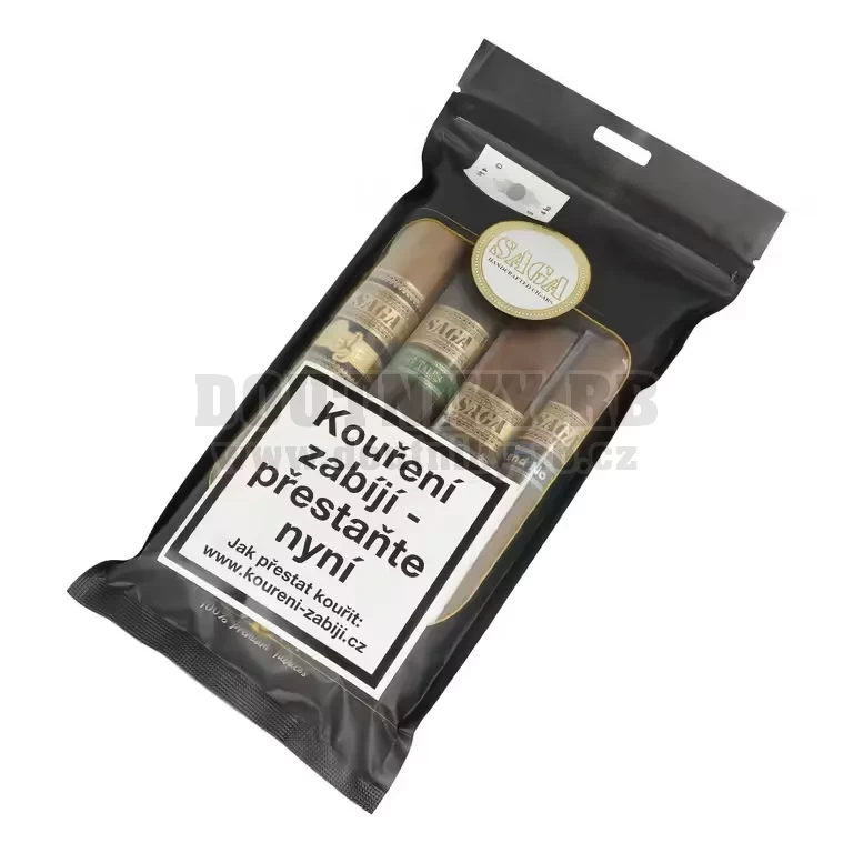 Výběr doutníků značky Saga v uzavíratelném vlhčeném sáčku.