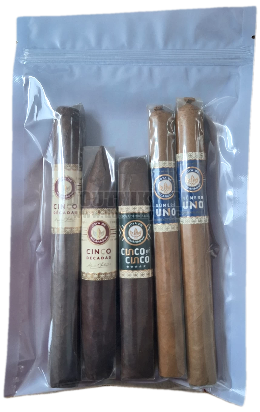 Výběr 5ks doutníků vyhlášeného výrobce Joya de Nicaragua serie Obras Maestras, nejvyšší série a top kvality tohoto výrobce.