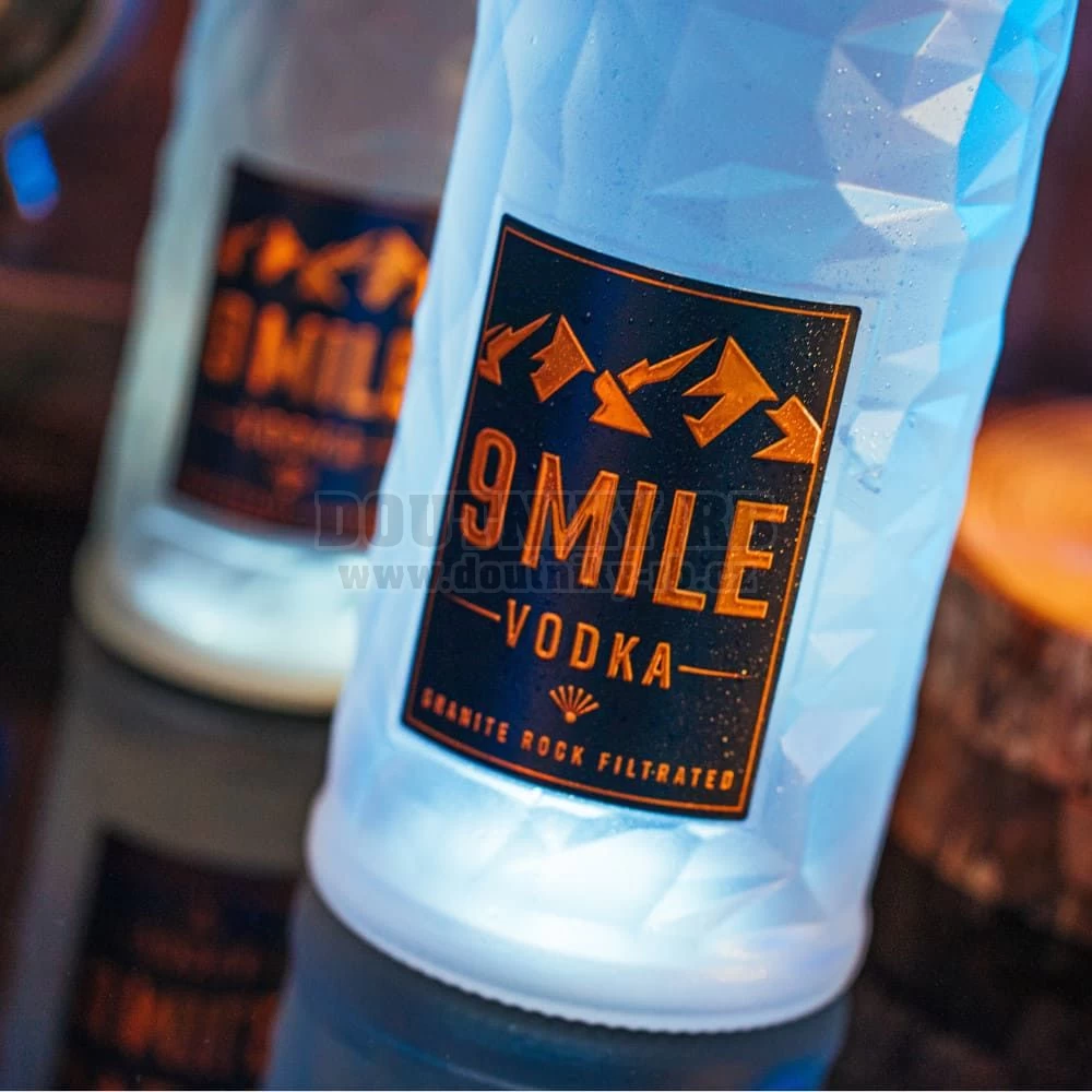 9 Mile Vodka je poutavá novinka, která zaujme na první pohled. Poctivá kvalita, filtrace přes granit, propracovaný design a LED světlo na každé lahvi vám zabezpečí skutečný zážitek z každého doušku.